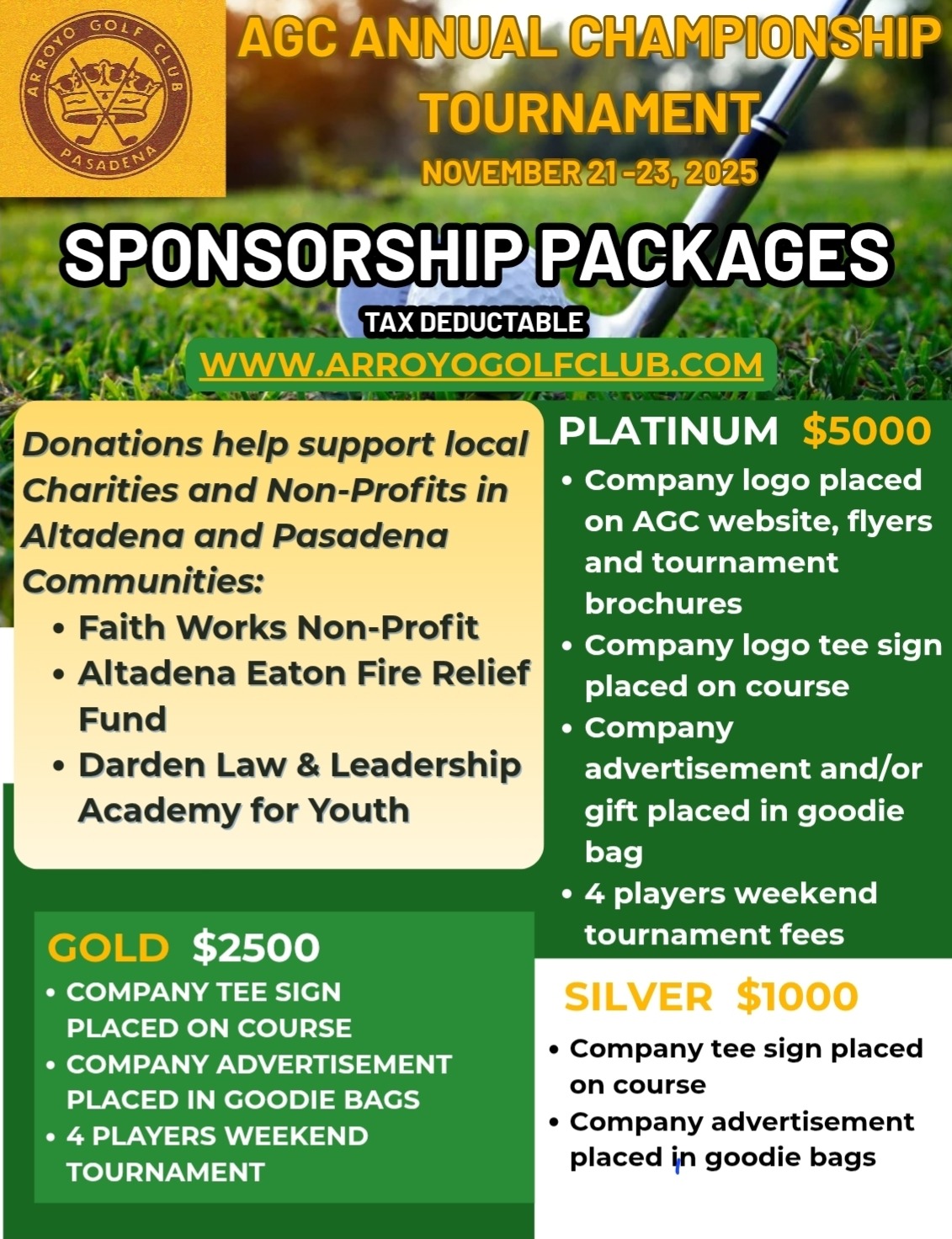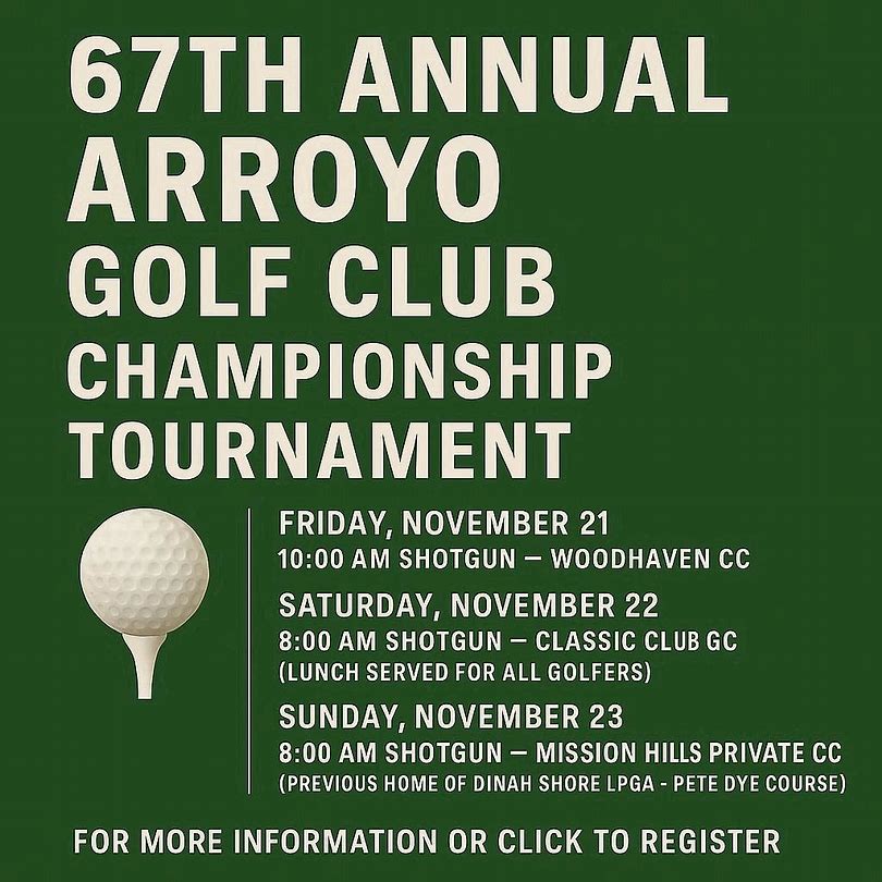 ARROYO GOLF CLUB MONTHLY TOURNAMENTS Pay Your 2025 Club Membership Fees Below: |